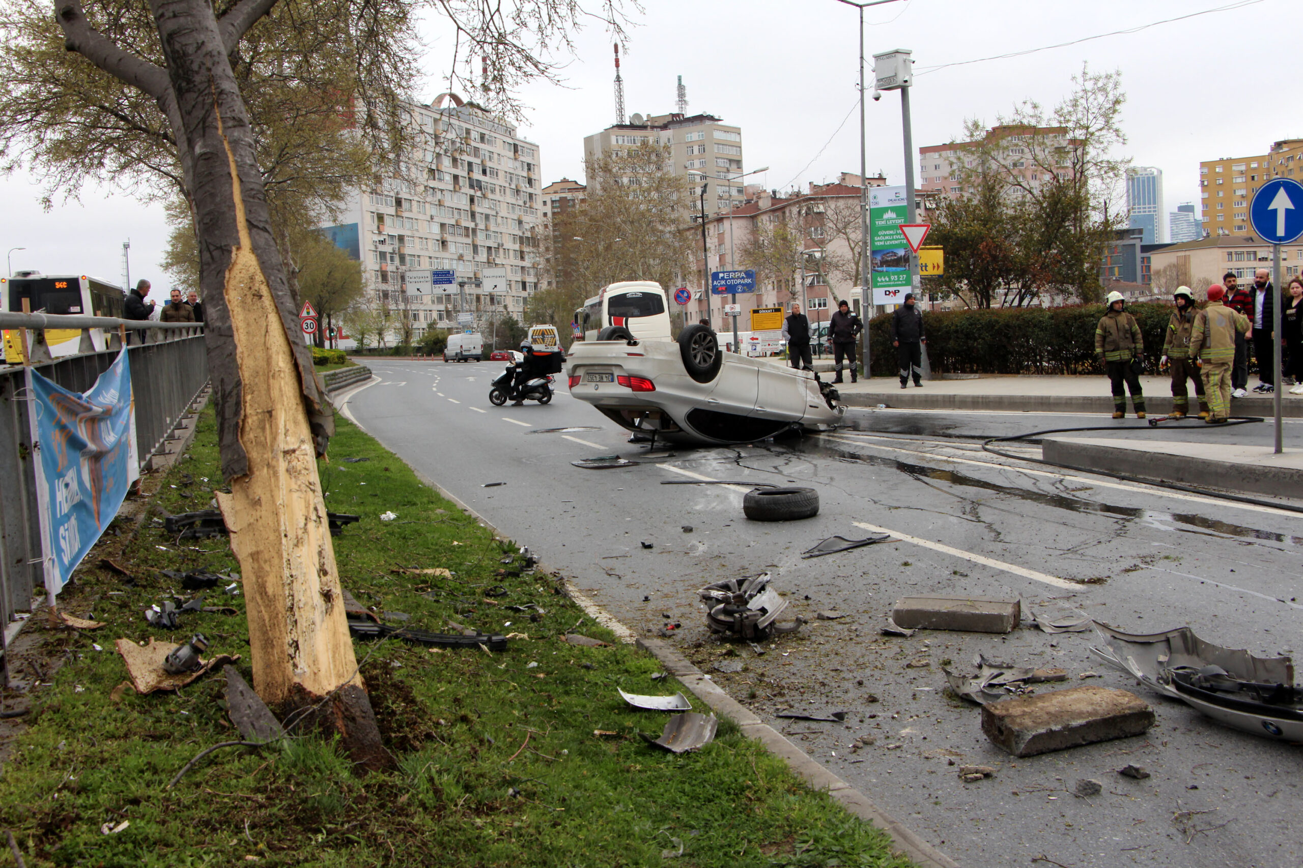 Kaza, Darülaceze Caddesi üzerinde saat 9.00’da meydana geldi. Edinilen bilgiye göre, Okmeydanı’ndan Şişli istikametine giden 34 NE 4352 plakalı otomobil sürücüsü aracının direksiyon hakimiyetini kaybederek refüjdeki ağaca çarptı. Çarpmanın ardından devrilen otomobildeki 3 kişi yaralı olarak araçtan çıktı. Haber verilmesi üzerine olay yerine polis, itfaiye ve ambulans sevk edildi. Yaralılar ambulansla Prof.Dr. Cemil Taşcıoğlu Şehir Hastanesi’ne kaldırıldı. Kaza nedeniyle Darülaceze Caddesi bir süre trafiğe kapatıldı. Kazaya karışan otomobilin kaldırılmasının ardından trafik normale döndü.