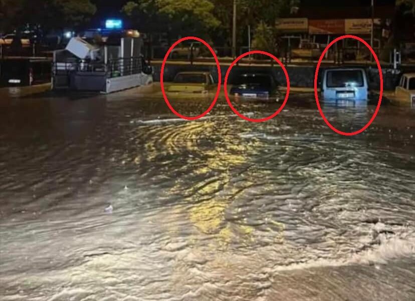 • Sivas’ın Divriği ilçesinde etkili olan sağanak, sele neden oldu. Park halindeki araçlar sel suları altında kaldı. Fotoğraf: Sivas,(DHA)