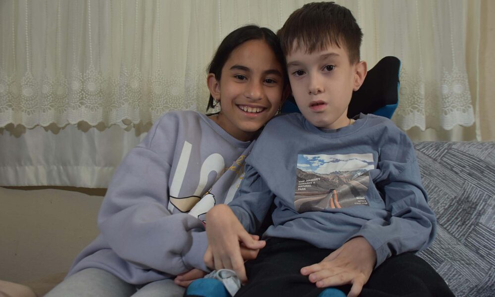 • İzmir'de yaşayan SMA hastası Doruk Çukurcu'nun tedavisi için başlatılan bağış kampanyası,19 Mart'ta yüzde 100'e ulaştı. (Fotoğrafta Doruk Çukurcu, kuzeni Kumsal Atmaca ile.) Fotoğraf: Nevra UÇKAÇ/İzmir,(DHA)