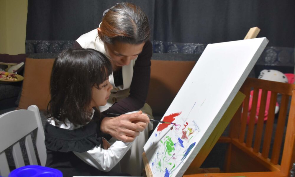 • İzmir'de yaşayan SMA Tip 2 hastası Esra Alkan (Solda), evde annesiyle birlikte hazırladığı ebruli ve yağlı boya tabloları satarak tedavisi için açılan bağış kampanyasına destek topluyor.Anne Akgül Alkan (Sağda).Fotoğraf:İzmir,(DHA)