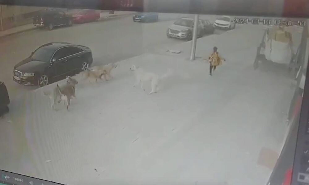 Sokak köpeklerinin ilkokul öğrencisine saldırdığı anlar kamerada