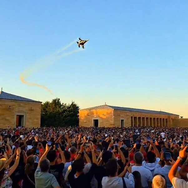 Ankarada 30 Ağustos Zafer Bayramı etkinlikleri kapsamında SOLOTÜRK F16 gösteri ekibi, Ulu Önder Mustafa Kemal Atatürkün ebedi istirahatgahı Anıtkabir üzerinde gösteri uçuşu gerçekleştirdi. Anıtkabiri ziyaret eden binlerce vatandaş, uçuşu ilgiyle takip etti. SOLOTÜRKün sosyal medya hesabından, söz konusu uçuşa ilişkin kokpit görüntüleri paylaşıldı. Atam izindeyiz notuyla paylaşılan görüntülerde, Anıtkabir ve Ankaranın bir kısmı kuş bakışı görüldü.