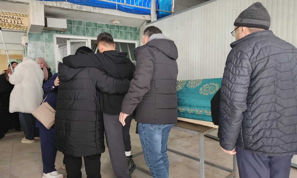 • Cenazeye yakınlarının yanı sıra aynı kazadan yaralı olarak kurtulan çocukları Görkem Şengün ayakta durmakta güçlük çekti. Fotoğraf: Bursa, (DHA)