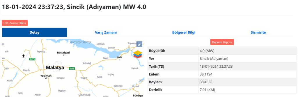 AFAD verilerine göre Adıyaman’da 4 büyüklüğünde deprem meydana geldi.