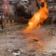 Sondaj sırasında ortaya çıkan metan gazı alev aldı