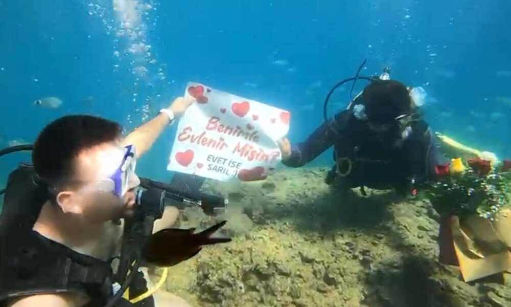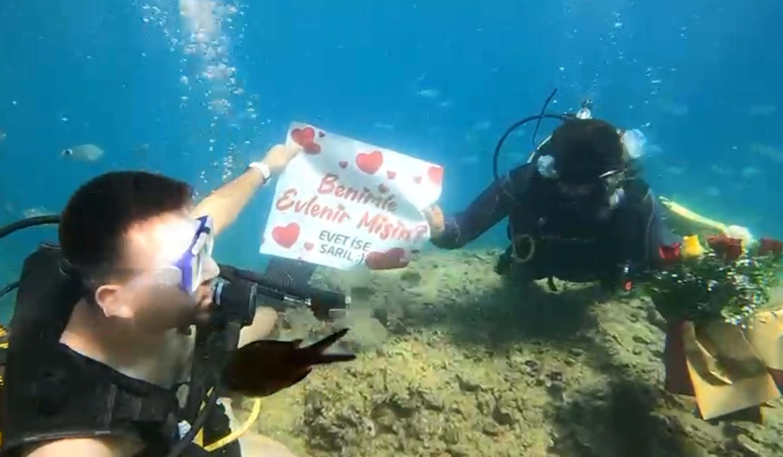 Kentte restoran müdürü olarak görev yapan Muhammet Akbıyık, uzun süre birlikte olduğu Ezgi Uysala sürpriz evlilik teklifi planladı. Çift, Okurcalar Mahallesindeki dalış okulunun eğitmenleri eşliğinde denize tüplü dalış yaptı. Bu sırada Akbıyık, önceden hazırladığı Benimle evlenir misin yazısının yer aldığı kağıdı açıp Uysala evlilik tekli yaptı. Teklifinin kabul edilmesinin ardından Akbıyık, Uysala yüzük taktı. Çiftin mutlu anları su altı kamerasıyla kaydedildi.