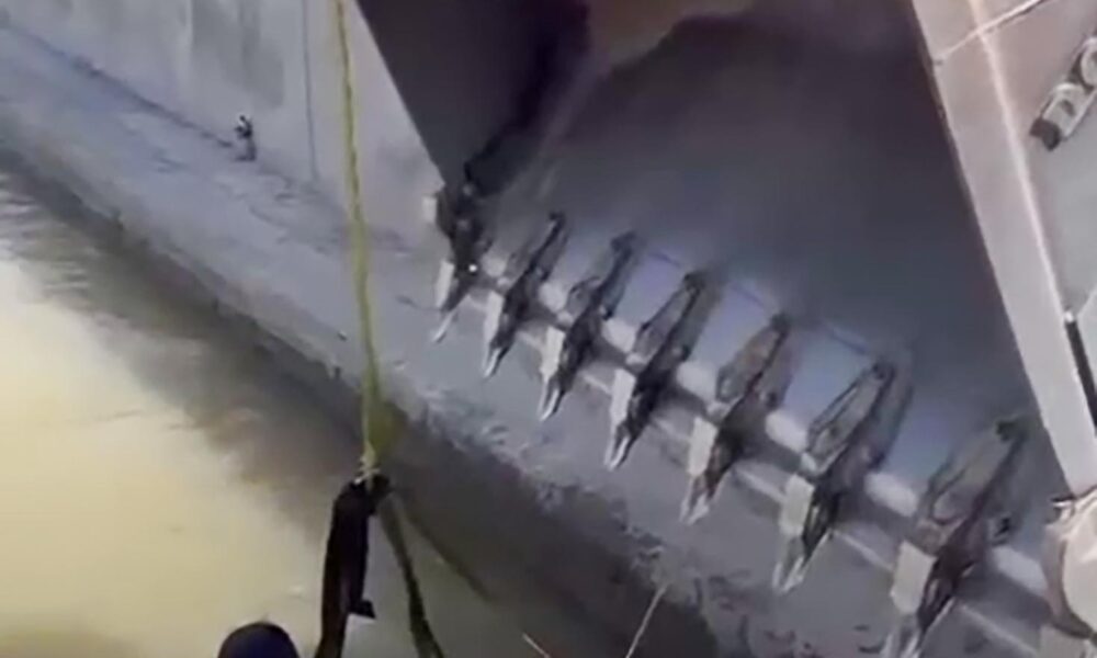 Su kanalına düşen dana, iş makinesiyle kurtarıldı