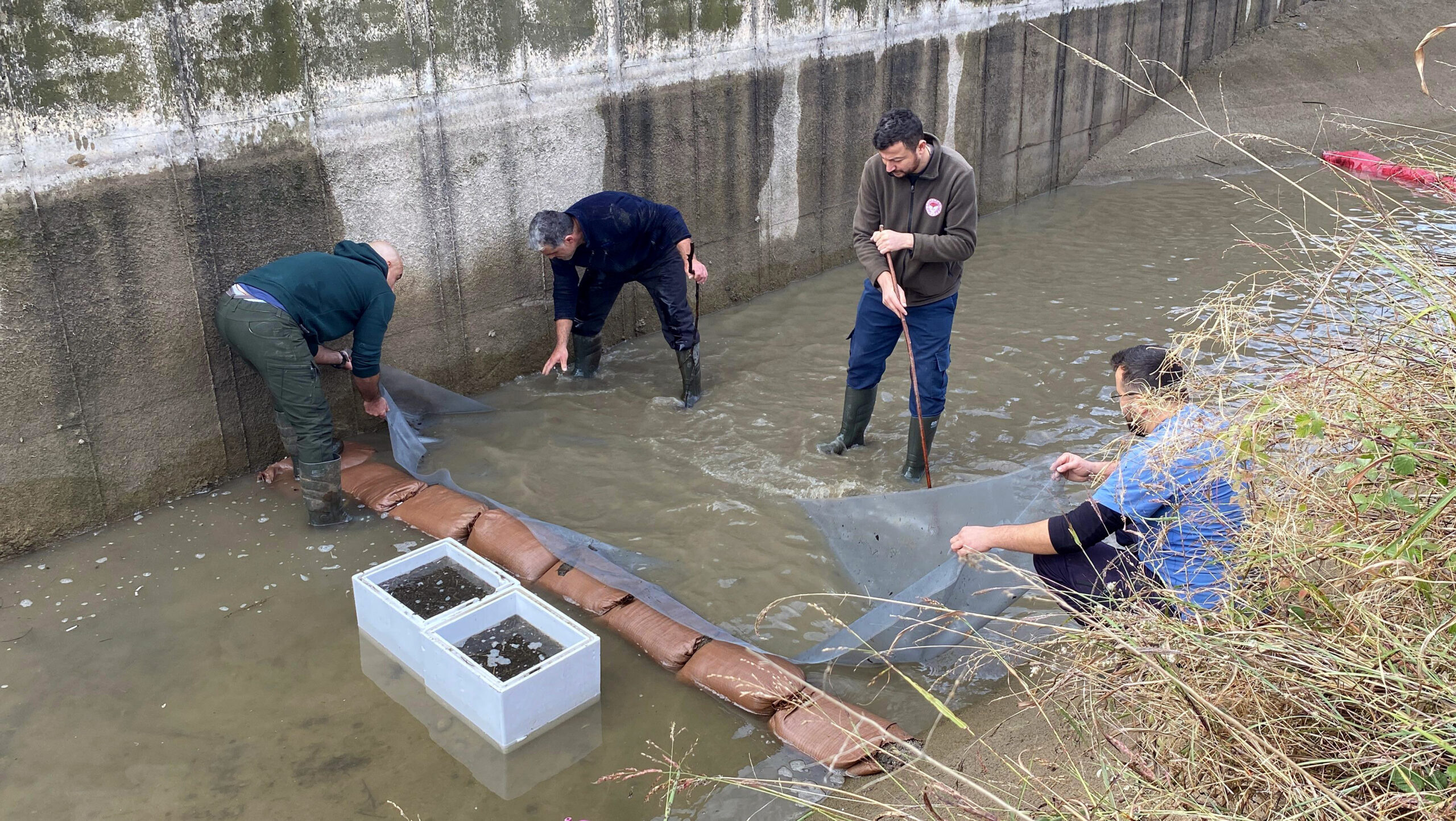 Su seviyesi düşen kanaldaki 3 bin yavru balık kurtarıldı