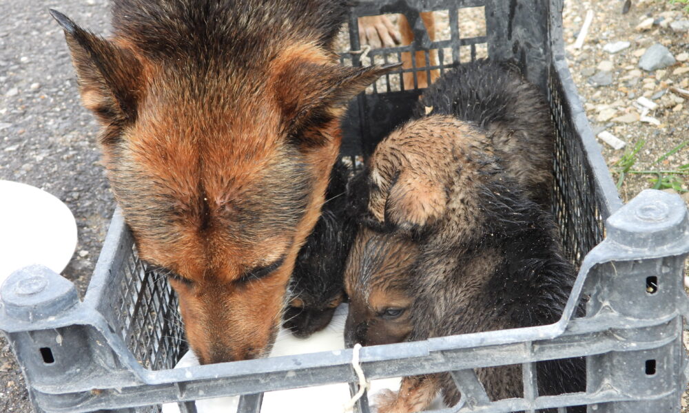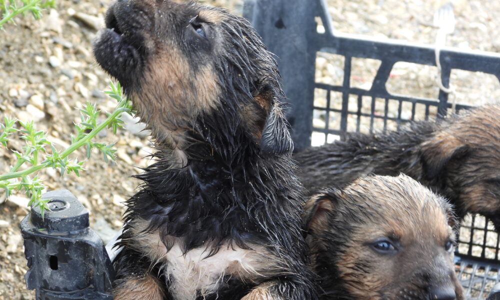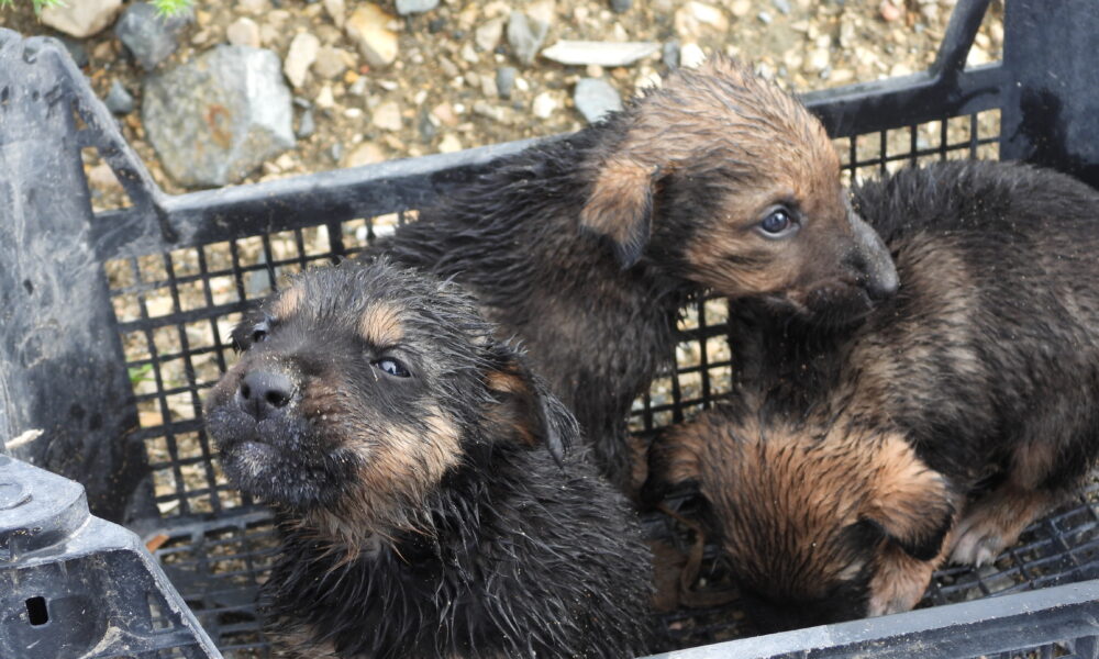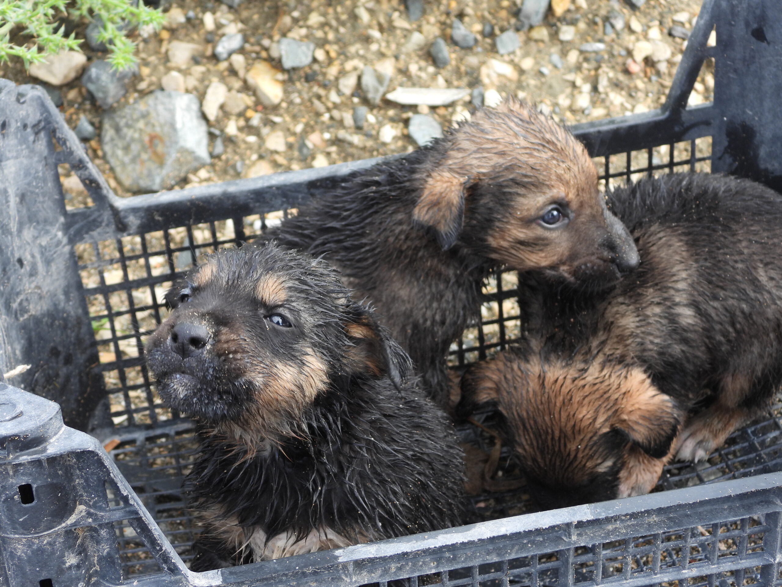 Su tahliye borusuna sıkışan yavru köpekler kurtarıldı