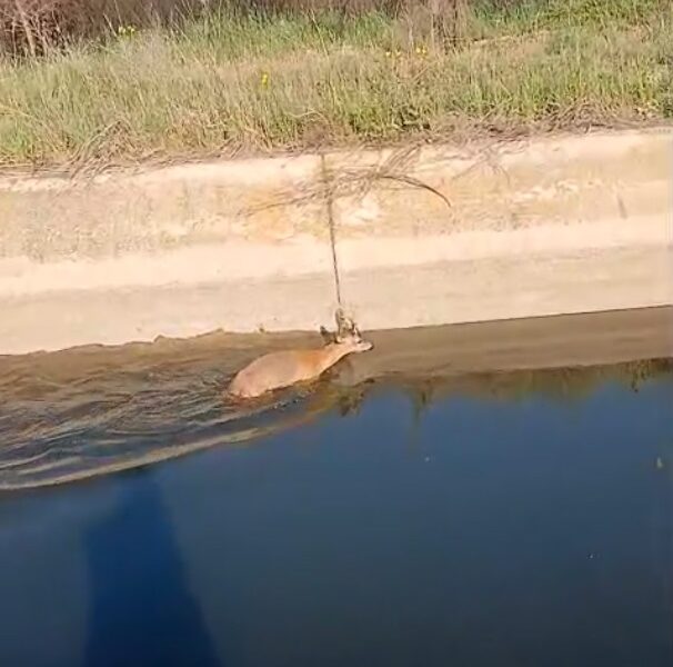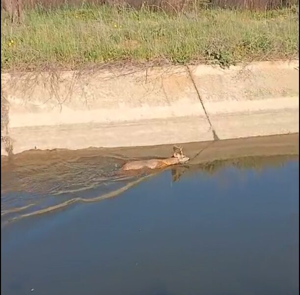Sulama kanalına düşen karaca kurtarıldı