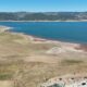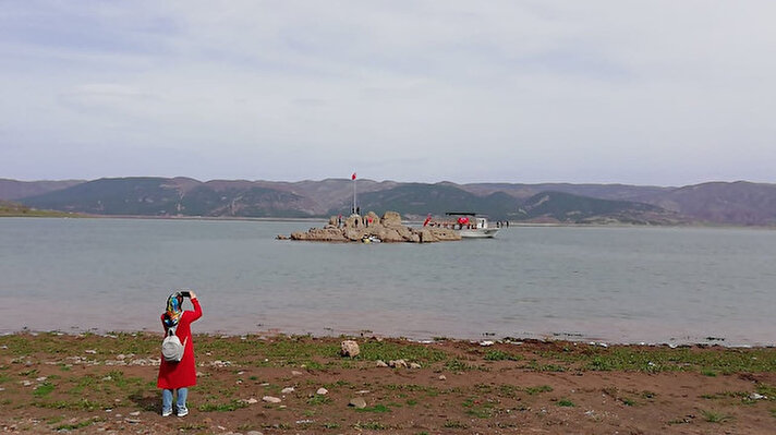 Sular çekildi, barajın ortasındaki kayalık karada kaldı