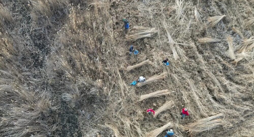 Kayseri'nin Develi, Yahyalı ve Yeşilhisar ilçeleri üçgeninde yer alan, 301 tür kuşun yaşadığı Sultan Sazlığı'nda kamış hasadı, kuraklık nedeniyle erken başladı. Fotoğraf: Metin DEĞİRMENCİ/Kayseri, (DHA)