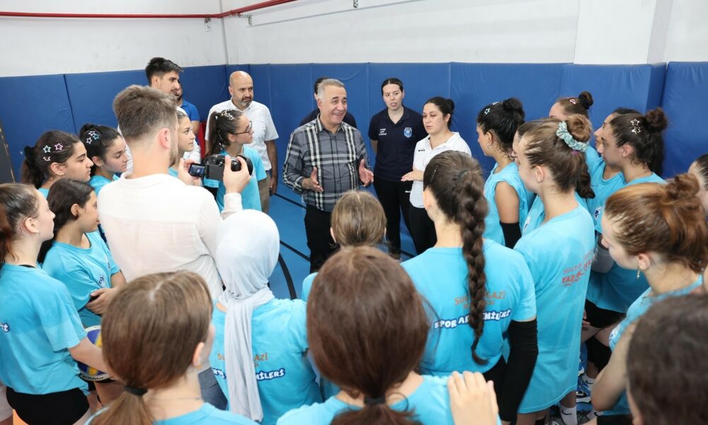 Sultangazi Belediyesi’nin 17 farklı branşta devam eden Yaz Spor Okulları kapsamında, voleybol dalında genç kızlar eğitim alıyor. Eğitim aldıkları salonda gençleri ziyaret eden Sultangazi Belediye Başkanı Abdurrahman Dursun, burada bir süre sohbet ederek kendilerine başarılar diledi.