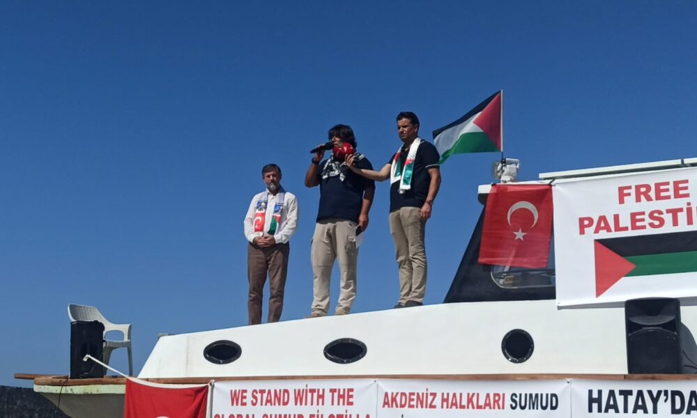 Grup adına konuşan Feridun Özdemir, dünyanın gözü önünde katliam yapıldığını söyleyerek, “Katil ve zalim bir devletin tüm Akdenizde korsanlık, haydutluk yapmasına göz yuman, ses çıkarmayan tüm dünya devletleri bu suça ortaktır. Başta Amerika olmak üzere İsraile destek veren, silah veren, yardım eden tüm devletler Akdenizin korsanlarıdır. Gazzede çocuk, bebek, yaşlı, hamile kadın öldüren İsrail, şimdide Akdenizde haydutluk yapıyor. Akdenizi kaosa sürüklüyor” dedi.