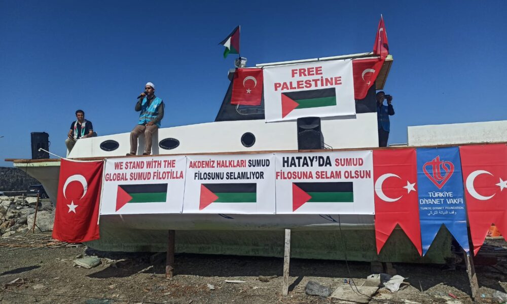 Gazzeye insani yardım ulaştırmak amacıyla yola çıkan Küresel Sumud Filosunu desteklemek için ilçedeki limanda Filistine Destek Platformu tarafından etkinlik düzenlendi. Etkinliğe katılanlar Türk ve Filistin bayraklarıyla, Gazzeye destek sloganı attı.