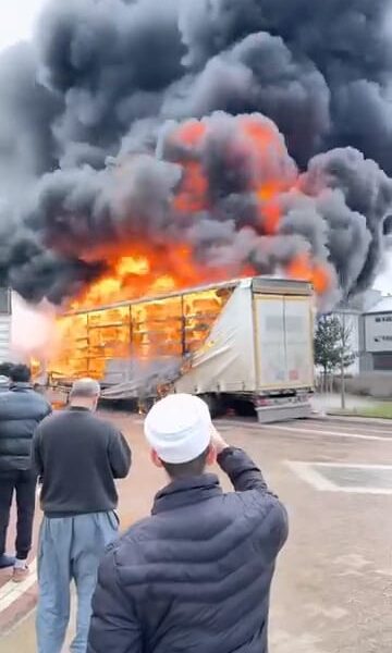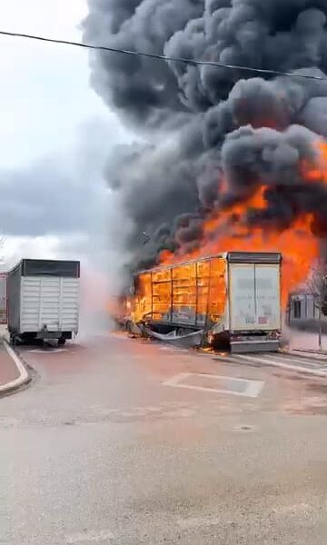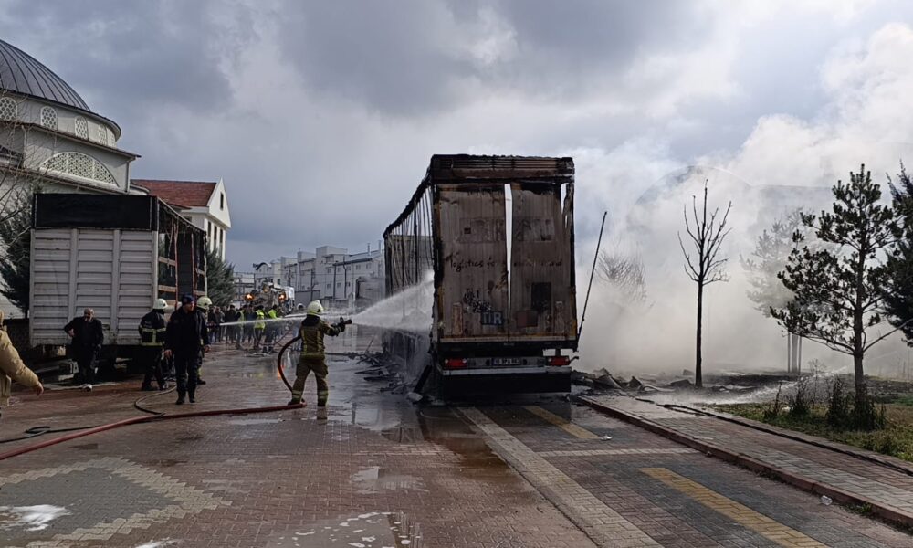 Sünger yüklü TIR’daki yangın, yanındaki mobilya yüklü dorseye sıçradı