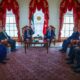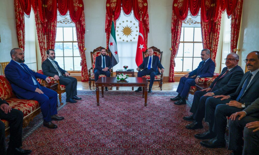 Suriye Cumhurbaşkanlığı’nın sosyal medya hesabından yapılan açıklamada, “Suriye Cumhurbaşkanı Sayın Ahmed Şara, Dışişleri Bakanı Sayın Esad Hasan Şeybani ile Savunma Bakanı Sayın Murhaf Ebu Kasra’nın da yer aldığı hükümet heyetiyle İstanbul’daki Dolmabahçe Sarayı’na ulaştı. Burada, Türkiye Cumhuriyeti Cumhurbaşkanı Sayın Recep Tayyip Erdoğan ile bir araya gelerek, ortak bazı konuları ele aldı” ifadelerine yer verildi.
