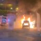 Sürücüsünün koku üzerine yol kenarına çektiği taksi alev alev yandı