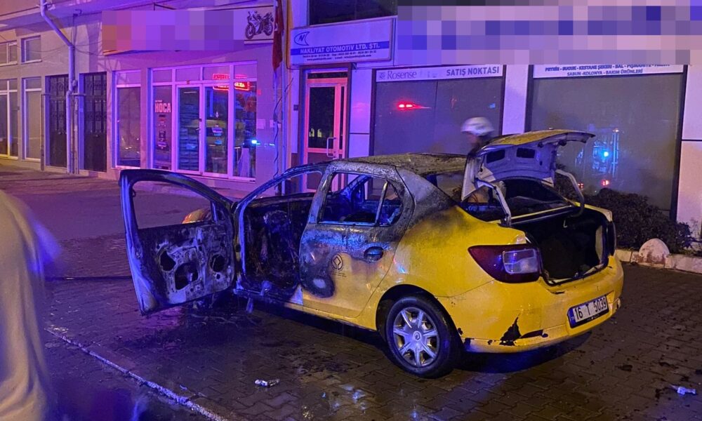Gemlik ilçesi Dr. Ziya Kaya Mahallesinde saat 01.00 sıralarında 16 T 5039 plakalı taksisiyle seyir halinde olan Şükrü Geyik, iddiaya göre; koku duyarak aracını yol kenarına çekti. Geyik, kaputunu açarak motoru kontrol ettiği sırada araç birden alev aldı. O anlar cep telefonu kamerasına yansırken, ihbarla olay yerine itfaiye ekipleri sevk edildi. Ekipler kısa sürede yangını söndürürken, araç kullanılamaz hale geldi. Yangının çıkış nedeni ile ilgili inceleme başlatıldı.