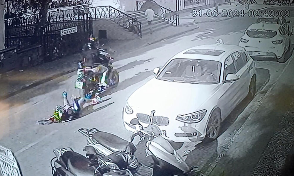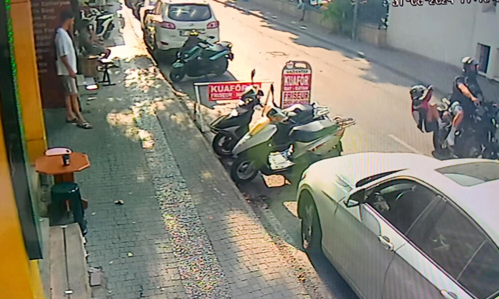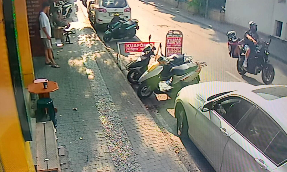 Kaza, çevredeki iş yerlerinin güvenlik kamerasına yansıdı. İki motosikletin yer aldığı görüntülerde, önce sürücülerden birinin motosikletin önünü kaldırdığı, ardından diğer sürücünün motosikletin önünü kaldırıp tek teker üzerinde gitmeye çalıştığı, bu sırada arkasındaki kadının yere düştüğü görüldü.