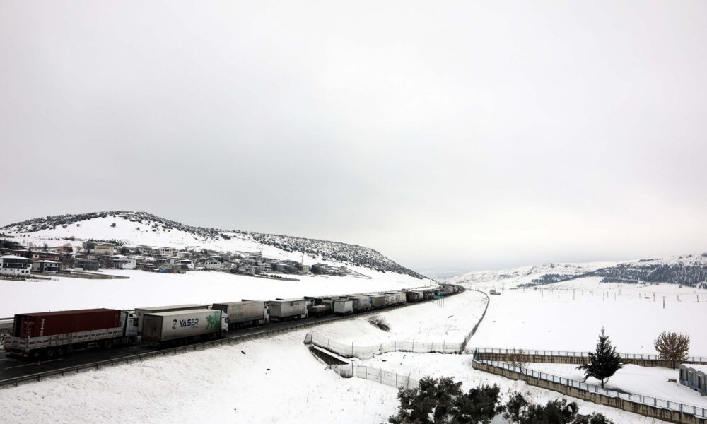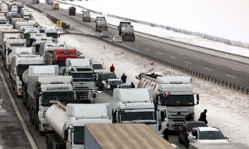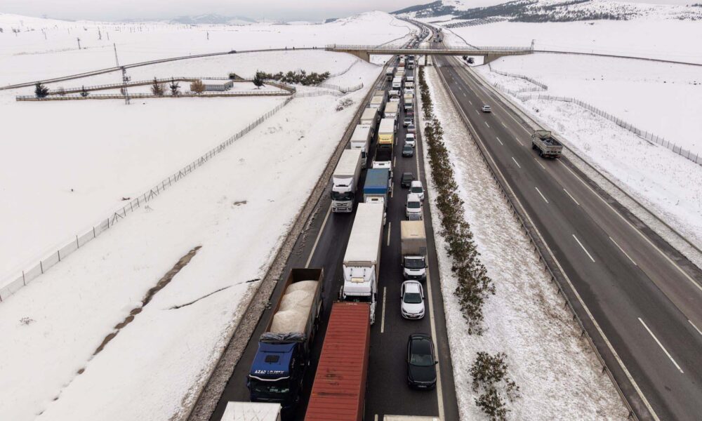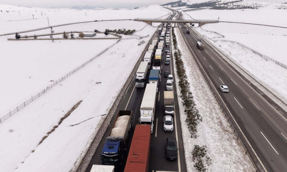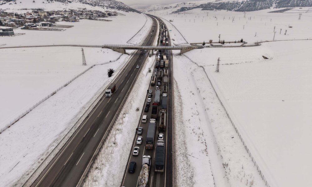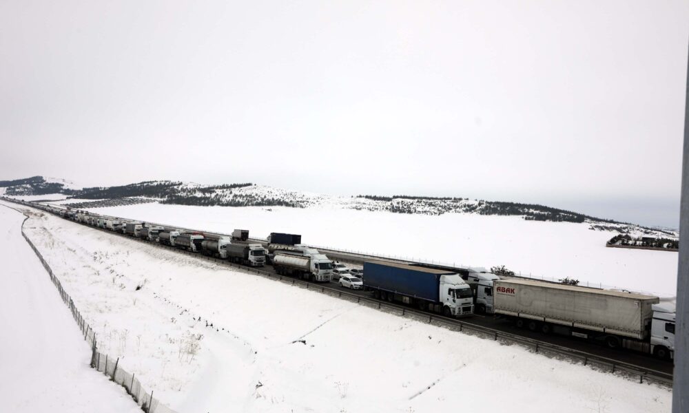 • Gaziantep'te Tarsus-Adana-Gaziantep otoyolunda kar yağışı nedeniyle uzun araç kuyrukları oluştu. Fotoğraf:Kadir GÜNEŞ/Gaziantep,(DHA)