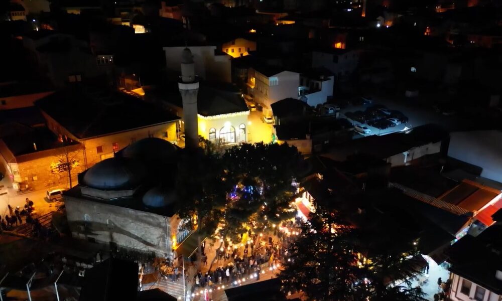 Bursalıların yanı sıra çevre illerden gelen misafirlerin de akın ettiği meydandaki sahur yoğunluğu dronla havadan görüntülendi.