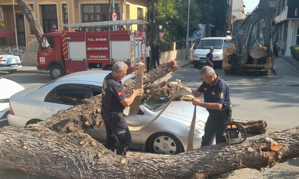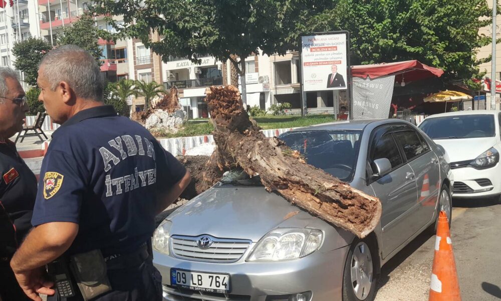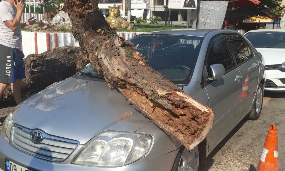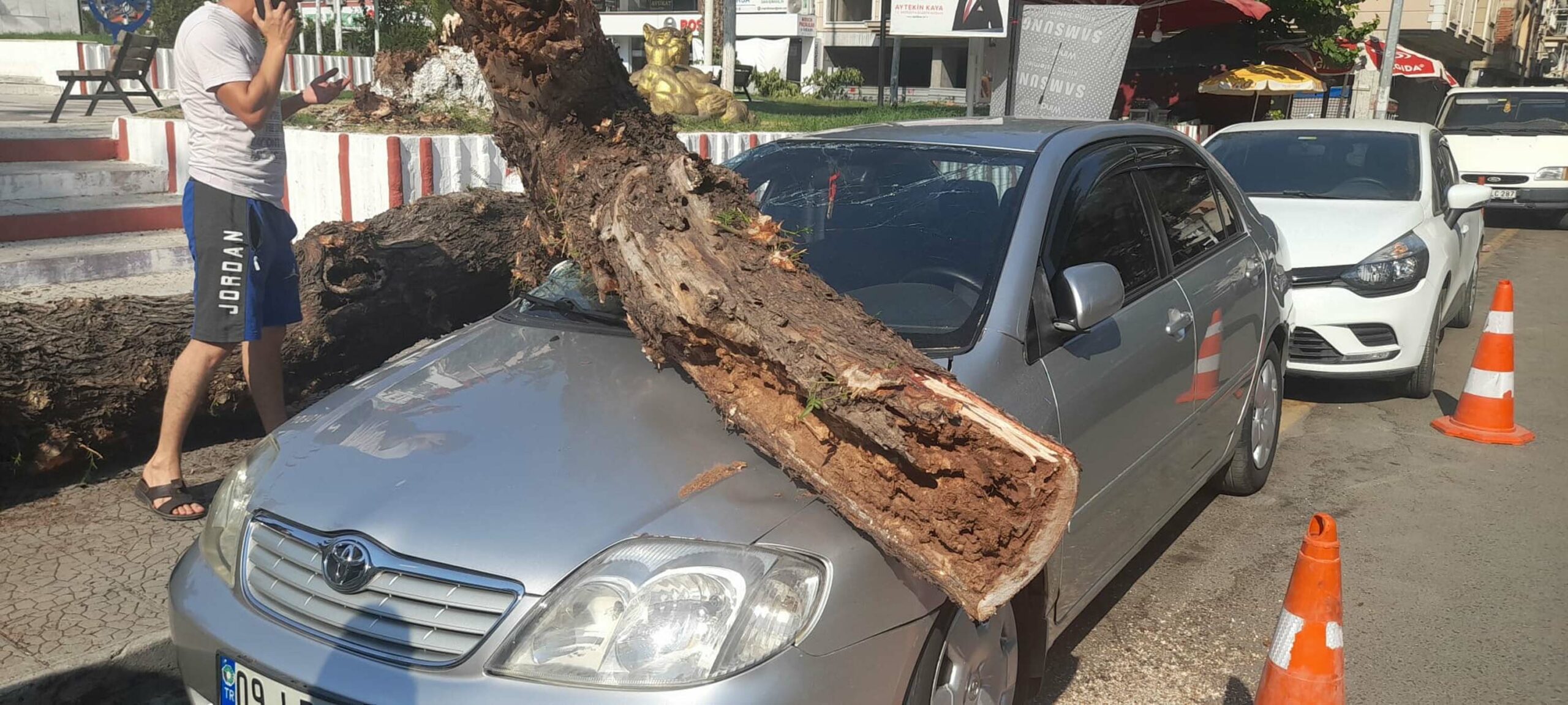 Tahtakurusunun çürüttüğü ağaç, park halindeki otomobilin üzerine devrildi
