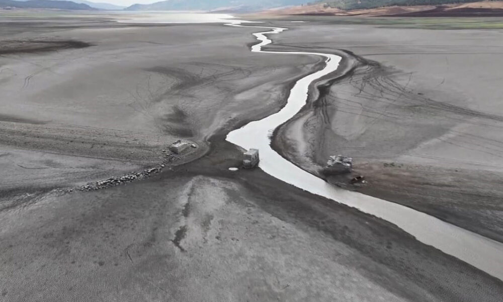 Tahtalı Barajı’nda su seviyesi yüzde 6’ya düştü; kuraklık dronla görüntülendi