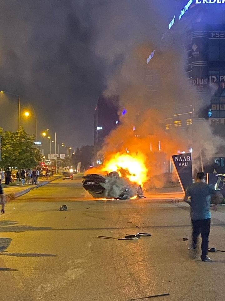 Kaza, saat 02.00 sıralarında Nilüfer ilçesi İzmir Yolu Caddesi’nde meydana geldi. Burak K. yönetimindeki 16 AST 706 plakalı otomobil, sürücüsünün direksiyon hakimiyetini kaybetmesi sonrası önce refüje ardından da ağaca ve aydınlatma direğine çarparak takla attı. Yaklaşık 150 metre savrulan araç ters dönerek dururken, sürücü ile yanındaki kadın, çevredekiler tarafından kurtarıldı. 2 kişinin çıkarılmasının ardından otomobil alev alırken, ihbarla bölgeye itfaiye, polis ve sağlık ekipleri sevk edildi. Yaralılar, sağlık ekiplerinin ilk müdahalesinin ardından ambulanslarla kaldırıldıkları Çekirge Devlet Hastanesinde tedaviye alınırken, itfaiye ekipleri alev alev yanan otomobile müdahale etti. Yangın kısa sürede söndürülürken, araç kullanılamaz hale geldi.