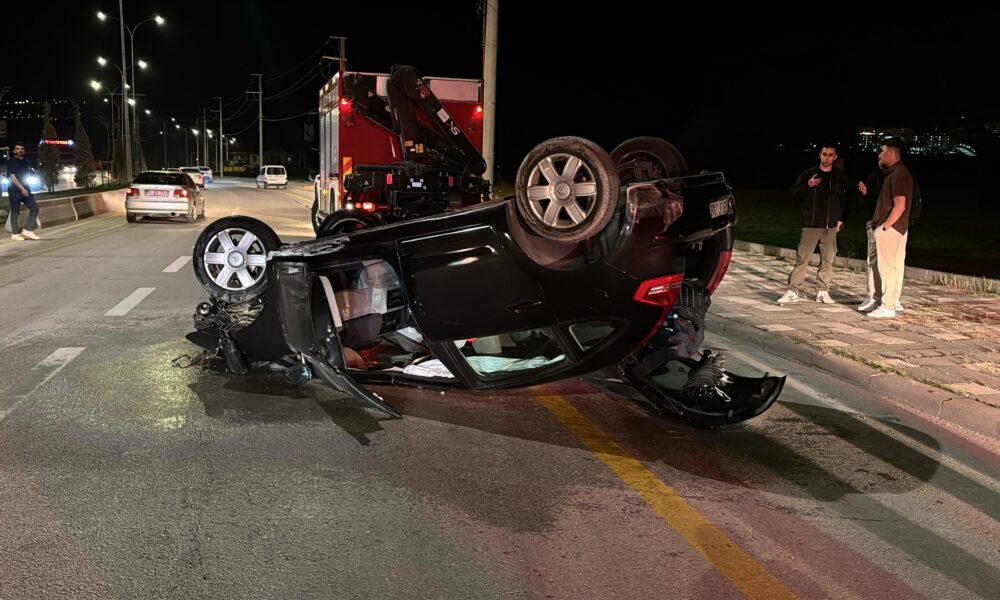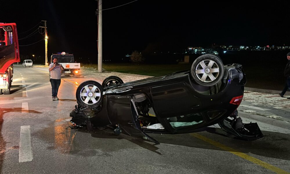 Takla atan otomobilde yangın çıktı: 1 yaralı