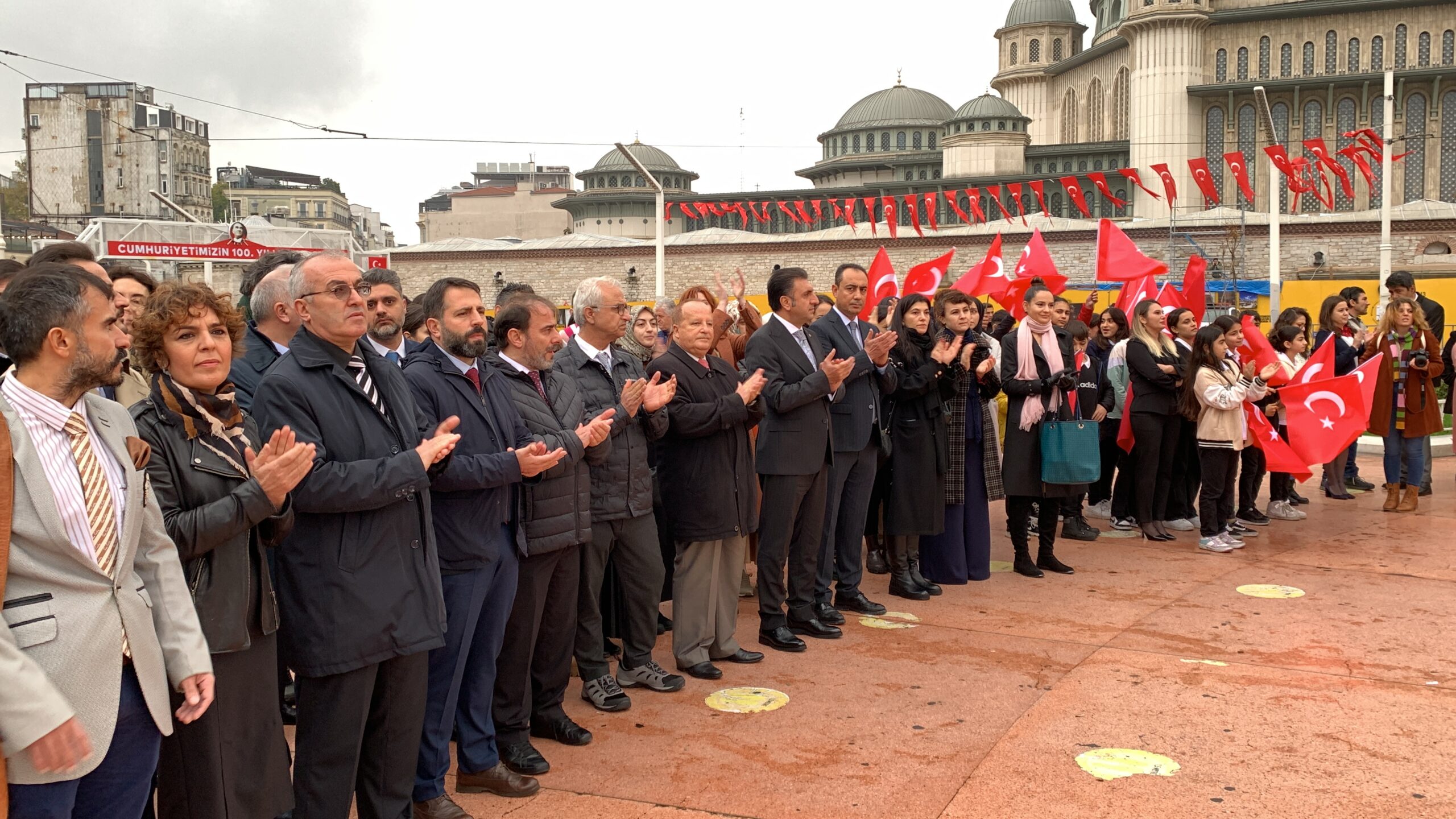 BEYOĞLU, Taksim Meydanı’nda 24 Kasım Öğretmenler Günü nedeniyle tören düzenlendi. Lise öğrencilerinden oluşan bir grup tören sonrası konser verdi.
