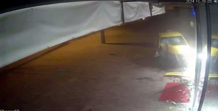Kaza, dün saat 05.30 sıralarında Çay Mahallesinde meydana geldi. Yasin T. yönetimindeki plakası öğrenilemeyen taksi, sürücüsünün direksiyon hakimiyetini kaybetmesi sonucu kontrolden çıkarak, o sırada kapalı olan motosiklet satış dükkanına çarptı. Kazayı görenlerin ihbarıyla olay yerine sağlık ve polis ekipleri sevk edildi. Hafif yaralanan Yasin T., ambulansla hastaneye kaldırıldı. Kaza iş yerinin güvenlik kamerasına yansırken, soruşturma başlatıldı.