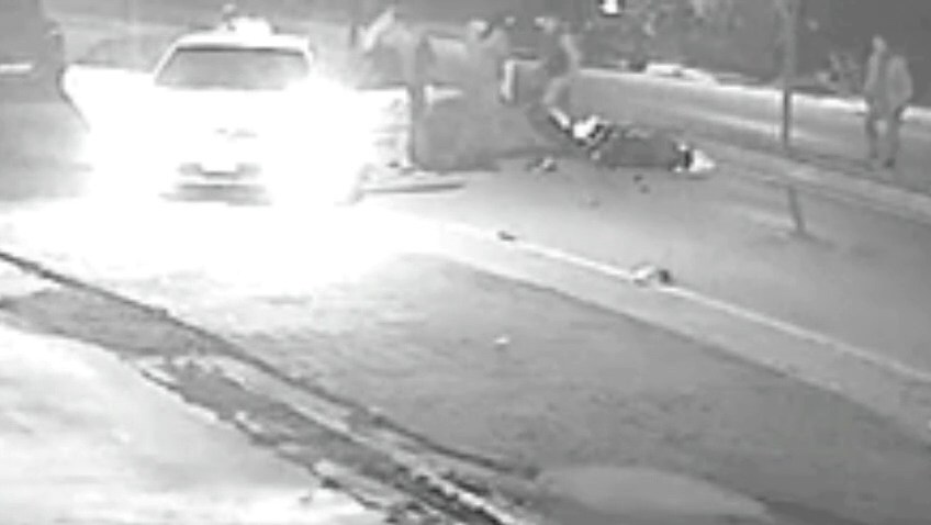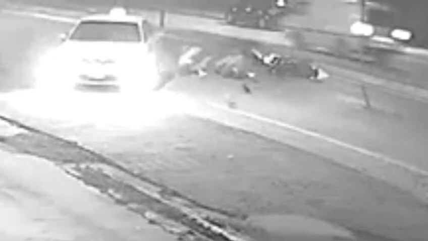 • Düzce'de taksinin arkadan çarptığı motosikletin sürücüsü ile yanındaki kişi yaralandı. Kaza, güvenlik kamerasına yansıdı. Fotoğraf: Musa KESKİN/Düzce, (DHA)