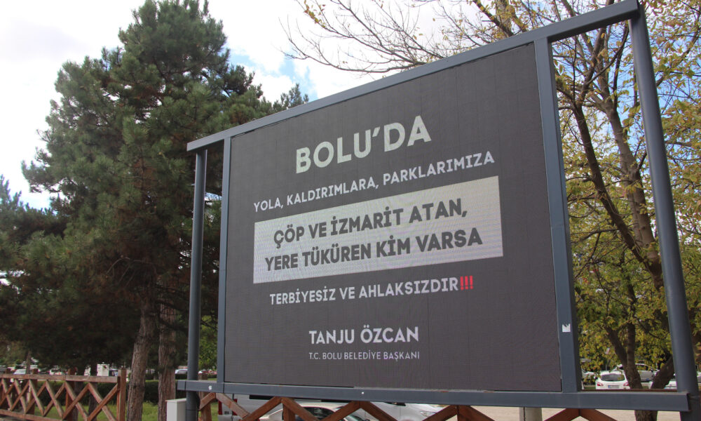 Tanju Özcan’dan çöp ve izmarit atanlara, reklam panolarından mesaj