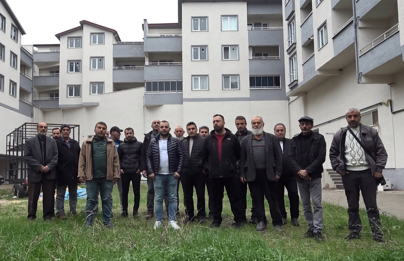 Hak sahipleri genelde arsa sahiplerinin müteahhitler tarafından mağdur edildiğini, ancak bu olayda müteahhidin de kendileriyle mağdur olduğunu belirtip, tapularını bir an önce almak istediklerini ifade etti. İnşaat yapı müteahhidi Ahmet Bayram, “Biz buraya yap-sat inşaat usulü sözleşme yaparak girdik. 2017de inşaata başladık. Sözleşmeye göre, ilk 21 daire satışı verildi. Bu sözleşmede parçalı satış olarak geçiyor. Buna göre inşaat yüzde 50ye gelince, 14 daire satışı daha verilmesi gerekiyordu. İnşaat yüzde 80 oranında tamamlanınca ise 4 satış kalmak şartıyla tamamını vereceklerdi. Bunlar bize yüzde 50 ve yüzde 80de satışı vermediler. Bu arada inşaat yüzde 50 tamamlanınca, bilirkişi götürerek rapor çıkarttık. Yüzde 80 tamamlanınca da satışımızı alamayınca tekrar rapor çıkarttık. Şu anda bina bitmiş vaziyettedir. Bu iki satışımızı ve sonuncusunu da vermediler. Biz inşaatı bitireli 2 yıl oldu ve halen satışlarımızı bitiremediğimiz için, arkadaşlarımız ve biz de mağduruz. Bina tüm denetimlerden başarılı şekilde geçmiştir. Yer sahibinin şikayetleri üzerine Çevre, Şehircilik ve İklim Değişikliği Bakanlığından bizi denetlemeye gelmişlerdir. Binada hiçbir eksik yoktur. Ancak vatandaşlar halen evlerinde oturamıyorlar. Yerleşenler bile mağdur durumdalar. Burada 100 kişi oturması lazım ama rahat yok. Bazen kavgalar da çıkıyor” ifadelerini kullandı.