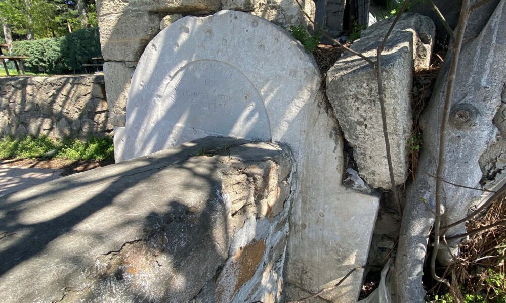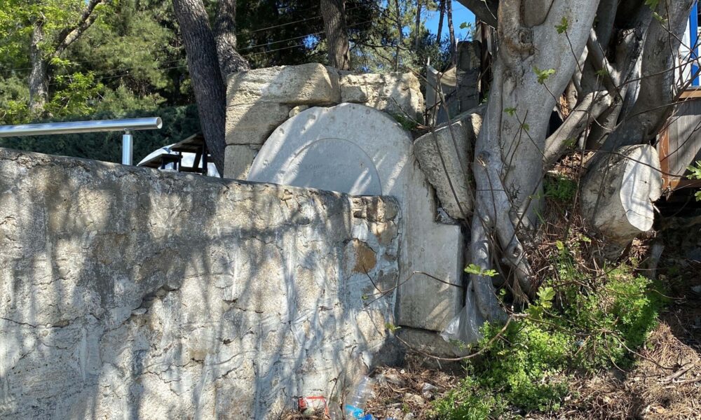 Tarihi çeşme taşı, duvarın içinde kalmış