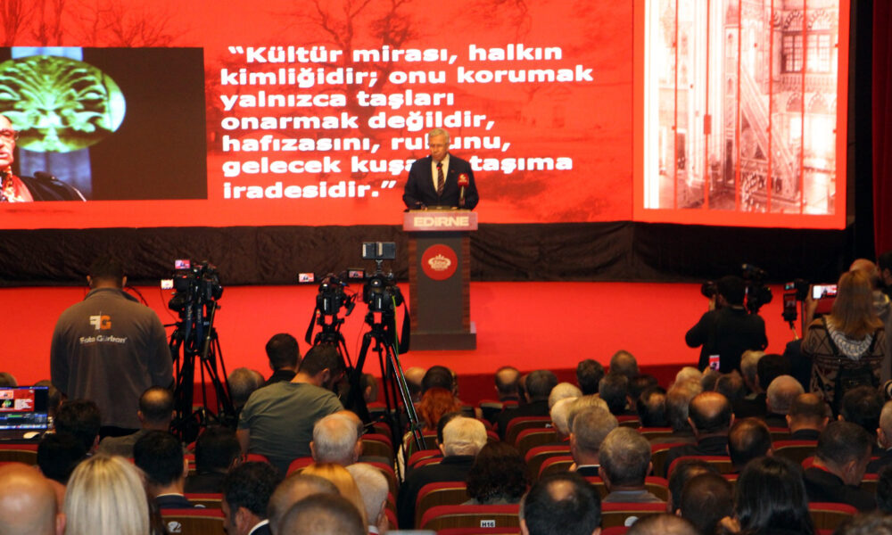 Açılışta konuşan ABB Başkanı Mansur Yavaş, Tarihi Kentler Birliği’nin Türkiye’nin dört bir yanındaki belediyeleri, ortak bir kültür bilinciyle buluşturan güçlü bir dayanışma ağı olduğunu söyledi. Yavaş, “Bizim işimiz yalnızca geçmişin izlerini onarmak değil, o izlerin anlattığı hikâyeyi geleceğe taşımaktır. Ecdat yadigârı bu eşsiz kentin her bir köşesini, Selimiye’den Eski Camii’ne, Beş Şerefeli’den zarif köprülerine kadar her santimini korumak, yarına taşımak boynumuzun borcudur. Edirne de bu sorumluluğu en iyi anlatan şehirlerden biri. Osmanlı’ya başkentlik yapmış bu kadim şehir, Mimar Sinan’ın ustalık eseri Selimiye Camii ile gökyüzüne, Meriç ve Tunca’nın zarif köprüleriyle zamana meydan okur” dedi.