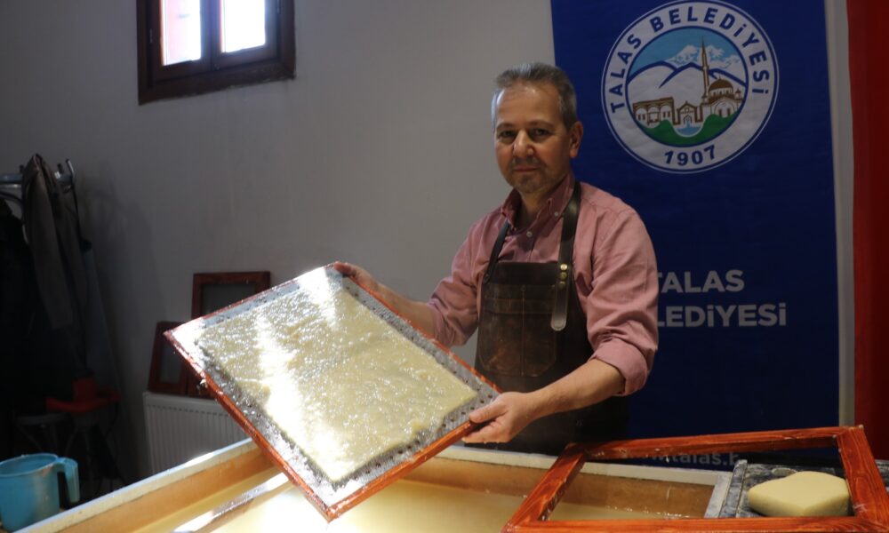 Kentte ‘Osmanlı Sokağı’ olarak bilinen Talas ilçesi Kiçikoy Mahallesi’nde yer alan tarihi Ali Saip Paşa Sokağı’nda yer alan 300 yıllık konak, Talas Belediyesi tarafından atölyeye çevrildi. Klasik Sanatlar Akademisi ismi verilen atölyede; Orta Asya’da 2 bin yıl önce kullanılan geleneksel yöntemlerle kağıt üretiliyor. İlçeye özgü ‘dut’ ağaçlarının dalları, kullanılmayan yiyecekler, giyilmeyen kıyafetler tarihi konaktaki atölyede geleneksel usulle öğütülerek sanatsal kağıt hamuru elde ediliyor. Tokmak ile dövülen hamur kağıdı, liflere ayrılıyor. Kalıplara alındıktan sonra keçe veya kabuk bezi gibi ince bir malzeme üzerine transfer edilen geleneksel kağıtlar ardından da oda sıcaklığında ya da gün ışığında kurumaya bırakılıyor. Kuruduktan sonra sanatsal kağıt olarak kullanılan lifli kağıtlar sanat eserlerine dönüşüyor ve bin yıllarca özelliklerini koruyor. Atölyede üretilen kağıtlar ve eğitim teknikleri ilerleyen günlerde açılması planlanan Kağıt Müzesi’nde sergilenmeyi bekliyor.