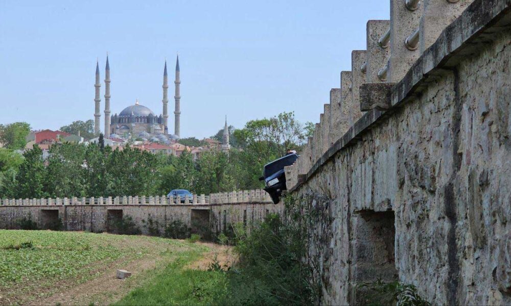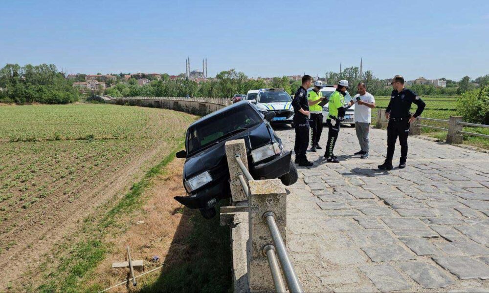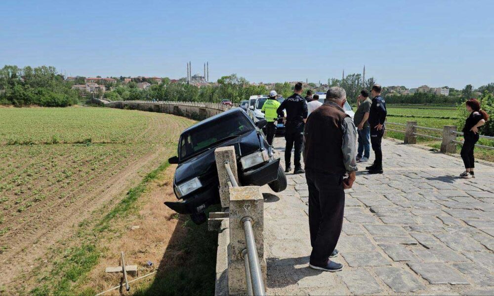 Kaza, akşam saatlerinde, tarihi Saraçhane Köprüsünde meydana geldi. T.G.nin kullandığı 22 AAP O21 plakalı otomobil, sürücüsünün kontrolü yitirmesiyle çarptığı bariyerin üzerinde asılı kaldı. İhbarla bölgeye polis ve sağlık ekipleri sevk edildi. Yaralı sürücü, Trakya Üniversitesi Tıp Fakültesi Hastanesine kaldırılıp tedaviye alındı. Bariyerde asılı kalan otomobil ise çekiciyle bulunduğu yerden kaldırıldı. (DHA