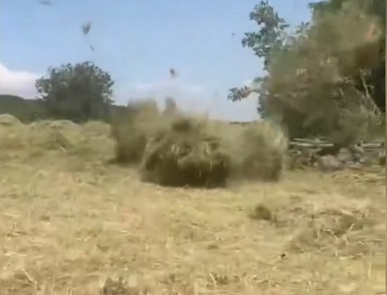 Solhan ilçesi Yenidal köyü Ziyaret mezrasındaki bir tarlada, dün hortum çıktı. Hortumun etkisiyle çiftçilerin topladığı otlar uçarken, o anlar cep telefonu kamerasıyla kaydedildi. Görüntülerde; bazı ot balyalarının metrelerce yükseğe savrulduğu görüldü.