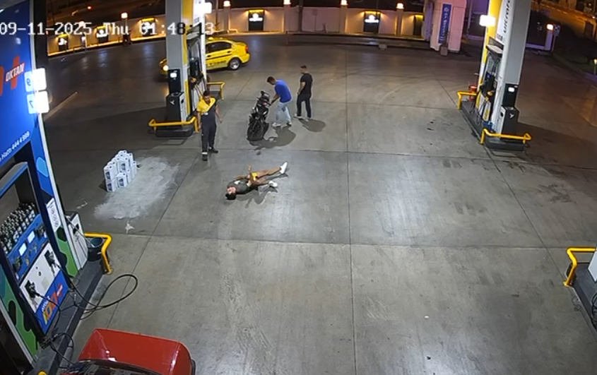 • Adana’da Serdar D. ve Enes G.'nin akaryakıt istasyonunda çıkan tartışmada tek yumrukta Umut Ayyıldız’ı bayıltıp hiçbir şey olmamış gibi motosikletlerine binip olay yerinden uzaklaştığı anlar güvenlik kamerasına yansıdı. Fotoğraf: Adana,(DHA)