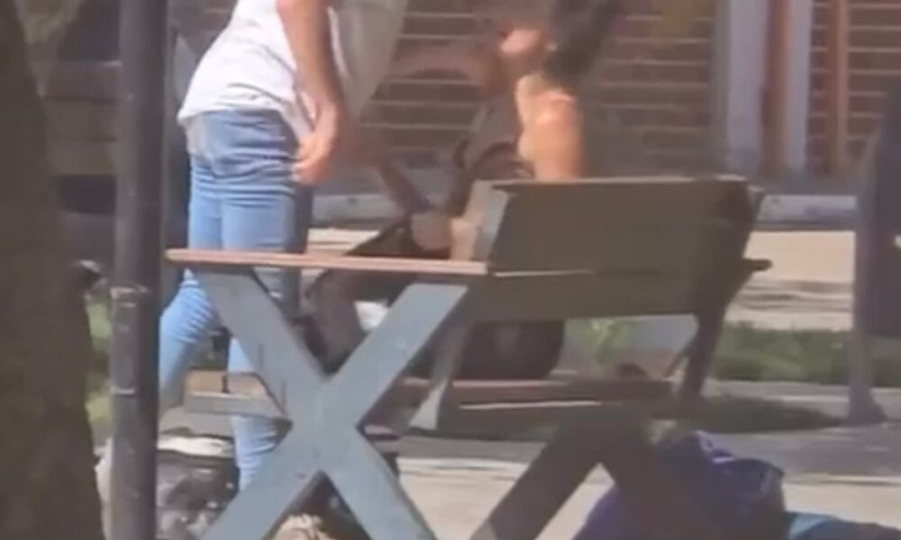 Olay, Mudanya ilçesindeki çocuk parkında meydana geldi. Parkta oturan çift arasında henüz bilinmeyen nedenle tartışma çıktı. Çıkan tartışmada şüpheli, sevgilisinin boğazını sıkarak defalarca yumruk attı. Genç kadın çığlık atarak yardım isterken, şüpheli koşarak kaçmaya çalıştı. Bu sırada yaşananları gören bir kişi, gence yumruk atarak durdurmaya çalıştı. O anlar cep telefonu kamerasına yansırken, polis şüpheliyi yakalamak için çalışma başlattı.