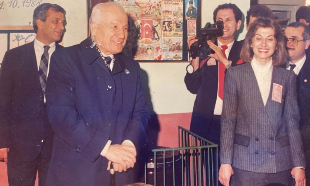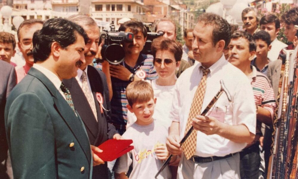 İzmir'de yaşayan ve öğretmen olarak atandığı Zonguldak'ta baston yapımını öğrenen Erdoğdu Özcan (74), 37 yıldır baston üretiyor. Kenan Evren (solda önde). Fotoğraf: Seza Nur ALPDÜNDAR/İzmir, (DHA)