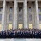 Programa katılan gençler, Kurtulmuşa Türk bayrağı, 81 ilden topladıkları toprağı hediye ederken, Meclis merdivenlerinde hatıra fotoğrafı çekildi.