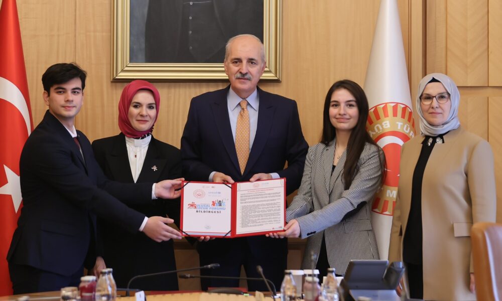 Meclis Başkanı Kurtulmuş, sosyal medya hesabından yaptığı açıklamada, “Aile ve Sosyal Hizmetler Bakanı Mahinur Özdemir Göktaş ile Ulusal Çocuk Forumu dolayısıyla Ankarada bulunan çocuk temsilcilerini, Türkiye demokrasisinin merkezi, milli iradenin tecelligahı Gazi Meclisimizde ağırladık. Bu yıl 25incisi gerçekleştirilen Ulusal Çocuk Forumunun ve büyük bir emeğin sonucu olarak hazırlanan Sonuç Bildirgesinin, çocuk haklarıyla ilgili çalışmalara ışık tutacağına inanıyor, bildirinin hazırlanmasına katkı sunanlara teşekkür ediyorum” dedi.