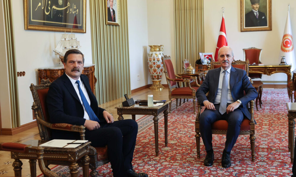 TBMM Başkanı Numan Kurtulmuş, yeni anayasa çalışmaları kapsamında Mecliste temsil edilen ancak grubu olmayan partilerin genel başkanları ile görüşmelerini sürdürdü. Kurtulmuş, ilk görüşmesini Türkiye İşçi Partisi (TİP) Genel Başkanı Erkan Baş ile gerçekleştirdi. Basına kapalı gerçekleşen görüşme, yaklaşık 45 dakika sürdü. Baş, görüşmenin ardından Mecliste basın toplantısı düzenledi. Anayasa yapım sürecinde usul tartışmalarına değinen Baş, “Bu görüşmelere Mecliste grubu bulunmayan siyasi partilerin dahil edilmesi önemli ama bunun Mecliste temsil edilmeyen partileri, sendikaları, meslek odalarını ve benzeri emekçi örgütlerini ve tüm toplumsal muhalefet güçlerini kapsaması gerektiğini ifade etmek isterim. Bu süreç açısından ikinci söyleyeceğimiz, saray rejiminin bir özelliği var; bir, tek adam rejimi bu ve Meclisi işlevsizleştirmeye çalışıyor, Meclisi basit bir enstrümana dönüştürmeye çalışıyor. Buna karşı Cumhurbaşkanlığı Hükümet Sistemi adı verilen bu sistem, ilk ortaya çıktığı günden beri Meclis iradesini önemsiyoruz. Hem TBMMnin hem de Meclisi Başkanının da çalışıyor olması bizim açımızdan kıymetli; ancak aynı saygıyı elbette ki o makamdaki kişilerden ve tüm siyasi partilerden bekliyoruz. Dolayısıyla iktidarın bir siyasi kampanya haline getireceği ve yıllar boyunca özellikle sıkıştığı dönemlerde sık sık dile getirdiği yeni anayasa söylemine aracılık etmek TBMM’nın görevi değil” dedi.