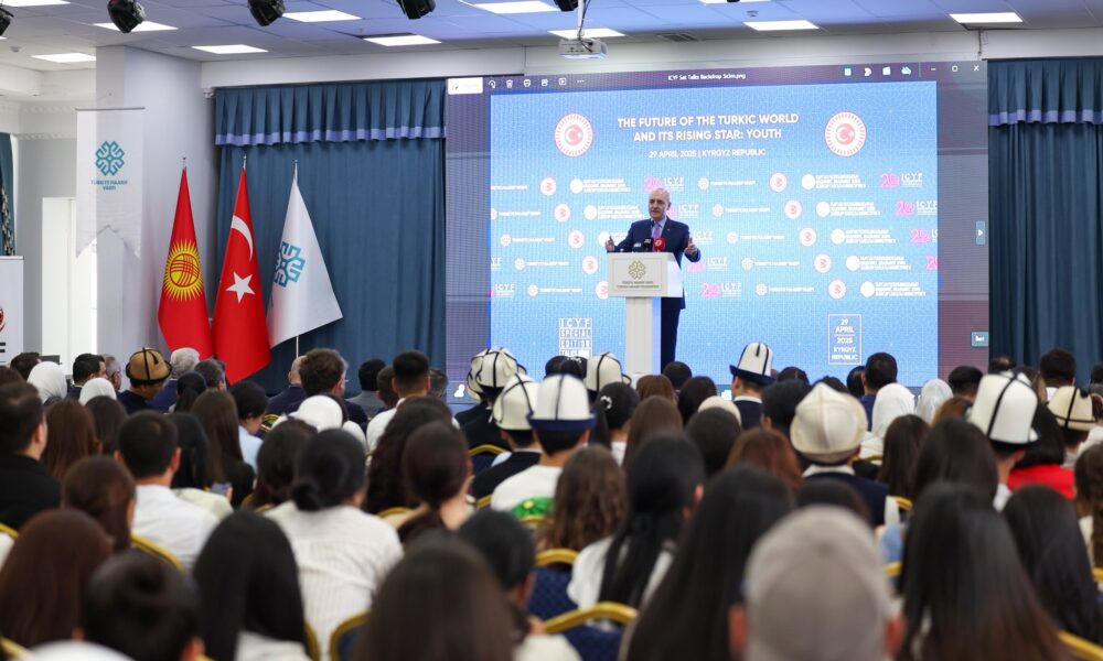 TBMM Başkanı Numan Kurtulmuş, Kırgızistan’ın başkenti Bişkek’teki resmi temasları kapsamında İslam İşbirliği Gençlik Forumu (ICYF) tarafından Türkiye Maarif Vakfı ve Kırgızistan Kültür, Enformasyon ve Gençlik Politikaları Bakanlığı iş birliğinde düzenlenen ‘Türk Dünyasının Geleceği ve Yükselen Yıldızı Gençlik’ temalı konferansta katılımcılara hitap etti.