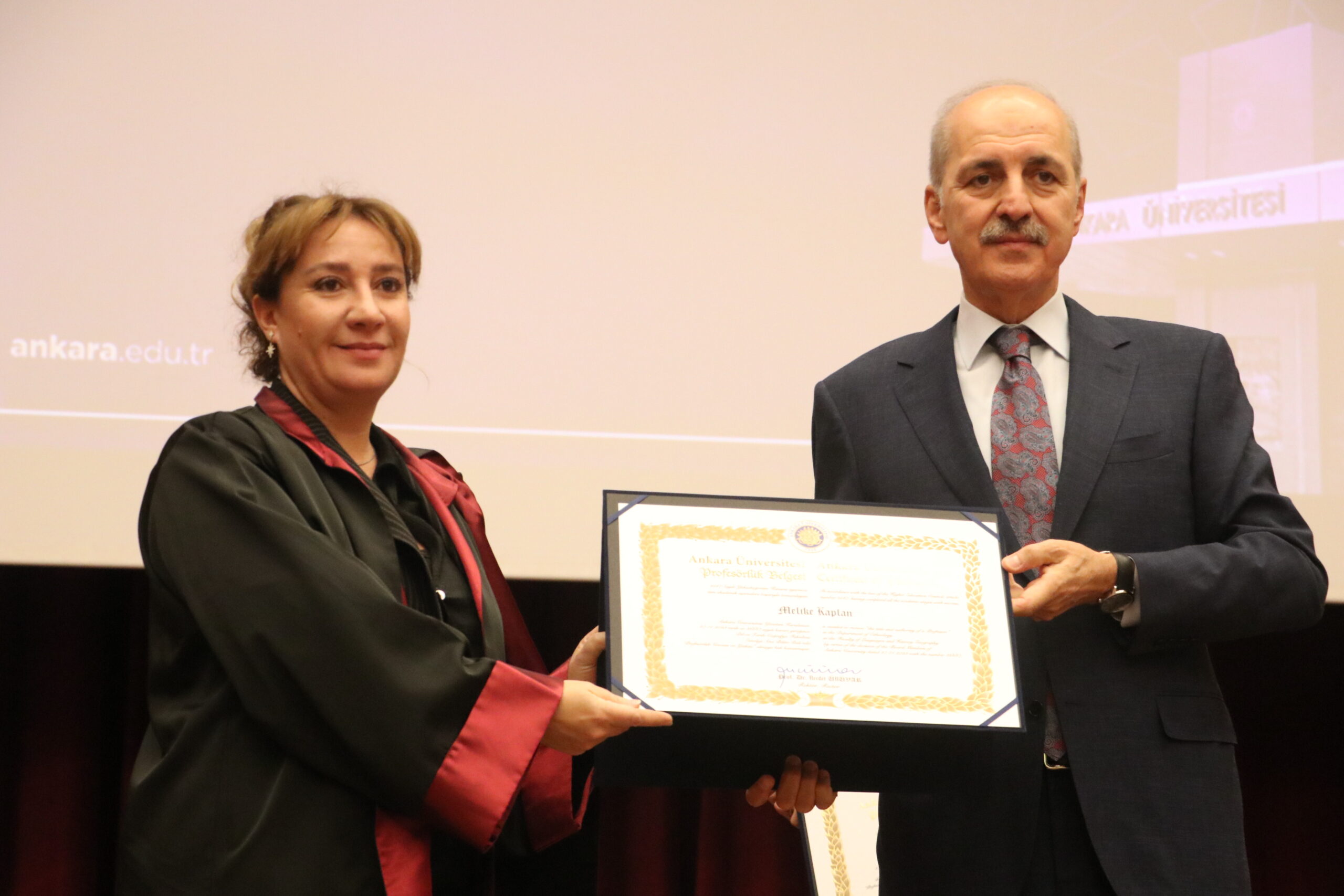 Kurtulmuş’a konuşmasının ardından Ankara Üniversitesi Rektörü Prof. Dr. Necdet Ünüvar tarafından hediye, takdim edildi. Kurtulmuş, daha sonra Ankara Üniversitesi’nde profesörlüğe terfi eden öğretim üyelerine belgelerini verdi.