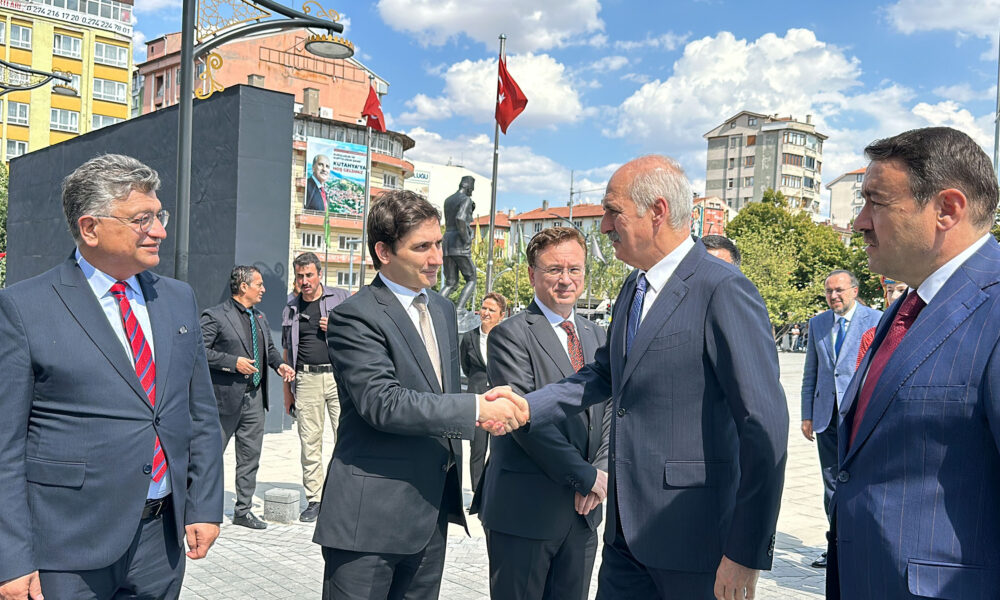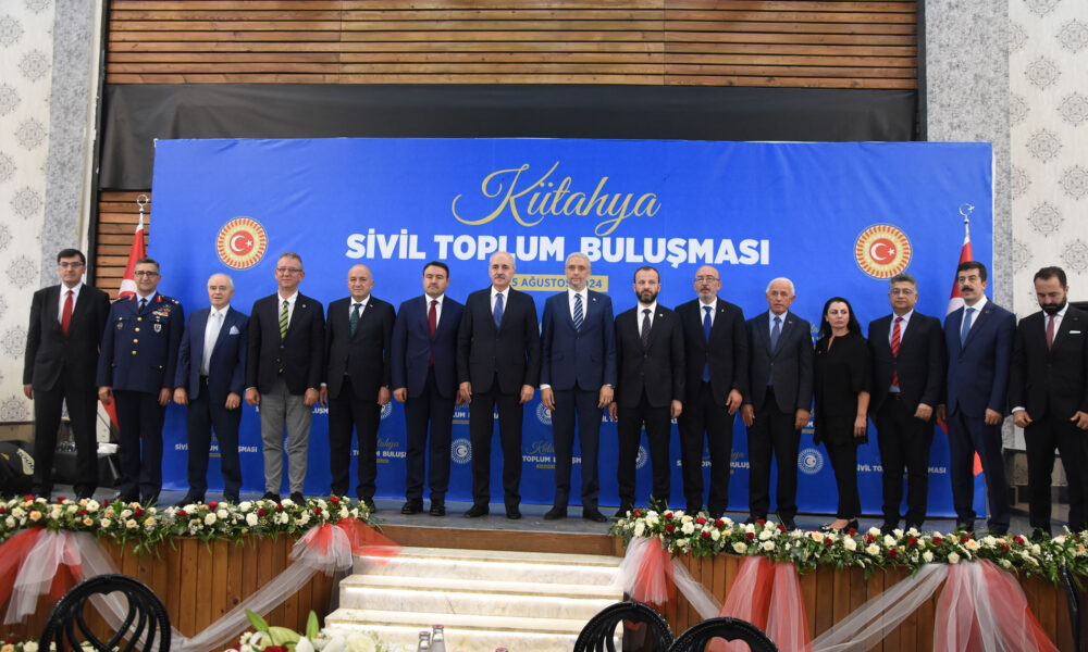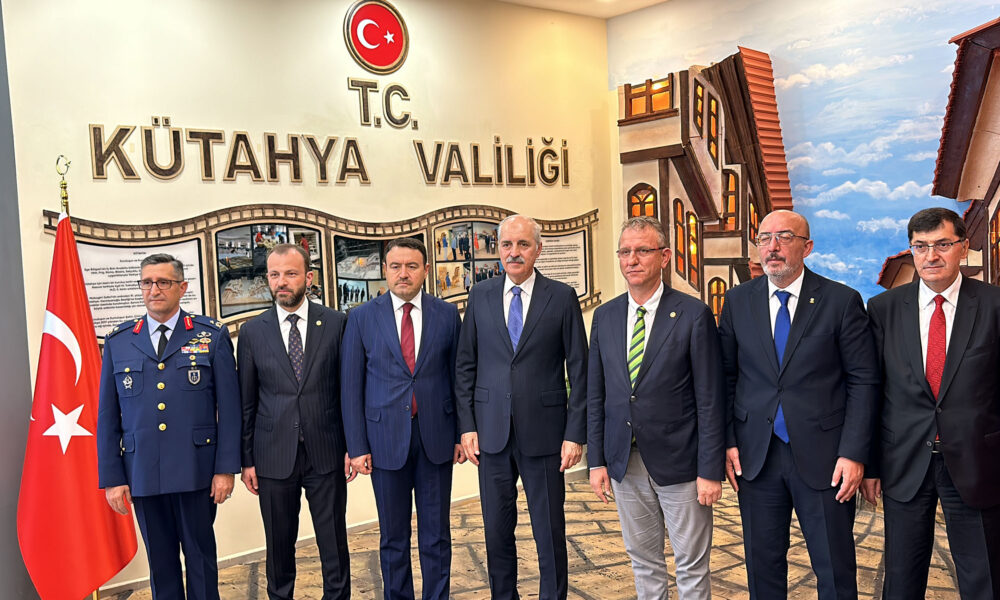 TBMM Başkanı Numan Kurtulmuş, Büyük Taarruz ve Zafer Haftası etkinlikleri kapsamında, Kütahya’ya geldi. Bir düğün salonunda, sivil toplum kuruluşu temsilcileriyle bir araya gelen Kurtulmuş’un yanı sıra programa Kütahya Valisi Musa Işın, AK Parti Kütahya milletvekilleri İsmail Çağlar Bayırcı ve Adil Biçer, Kütahya Hava Er Eğitim ve Tugay Komutanı Tuğgeneral Mustafa Baş, Kütahya Belediye Başkanı Eyüp Kahveci ile siyasi parti ve sivil toplum kuruluşlarının temsilcileri katıldı.