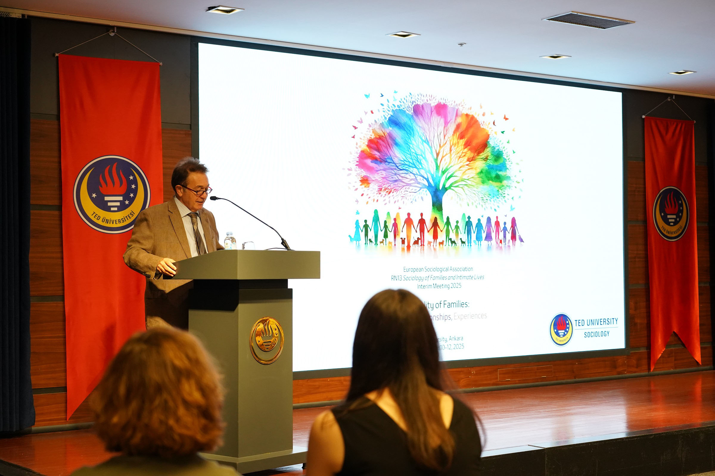 Avrupa Sosyoloji Derneği’nin (European Sociological Association-ESA) RN13 Sociology of Families and Intimate Lives Araştırma Grubu Ara Toplantısı, TED Üniversitesi’nde gerçekleştirildi. Toplantıya TEDÜ Sosyoloji Bölümü ev sahipliği yaptı. Etkinlikte aile ve yakın ilişkiler sosyolojisi alanındaki güncel gelişmeler tartışıldı. Finlandiya, Birleşik Krallık, Almanya, Macaristan, Rusya, Litvanya, Polonya, Ukrayna, İtalya, Danimarka, Avustralya, Çekya ve Türkiye’den 49 akademisyen ve araştırmacı çalışmalarını sundu. Açılış konuşmalarını Finlandiya’dan Anna-Maija Castren ve Türkiye’den Nükhet Sirman yaptı. Toplantıda ele alınan başlıca konular ebeveynlik, annelik, babalık, doğurganlık, aile içi toplumsal cinsiyet ilişkileri, ulusötesi aileler, göçmen ve mülteci aileleri ile bakım emeği oldu. Sunulan bildiriler, ailelerin farklı biçim, bağ ve deneyimlerini bireysel, etkileşimsel ve yapısal faktörler ışığında değerlendirerek geniş bir perspektif ortaya koydu.